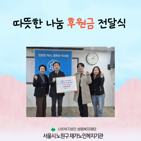 내 용 : 노원구약사회 류병권 회장님(동문약국) 200만원 , 이영순 약사님(소명약국) 100만원