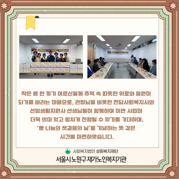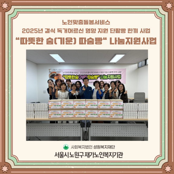 기관행사 2025년 노인맞춤돌봄서비스 결식 독거 어르신 영양지원 단팥빵 한끼 사업"따뜻한(기운) 따숨빵" 나눔지원사업…