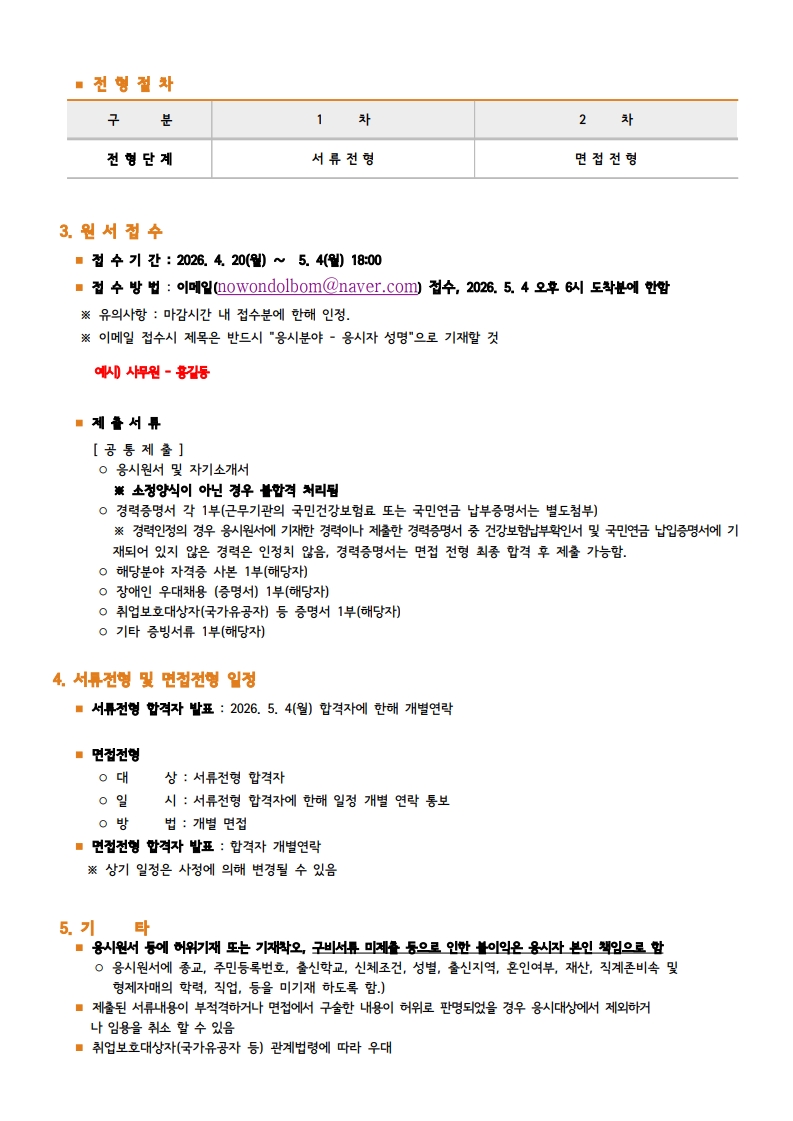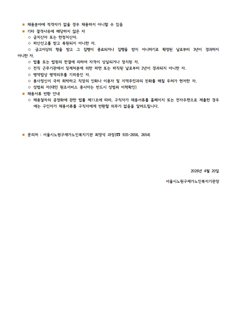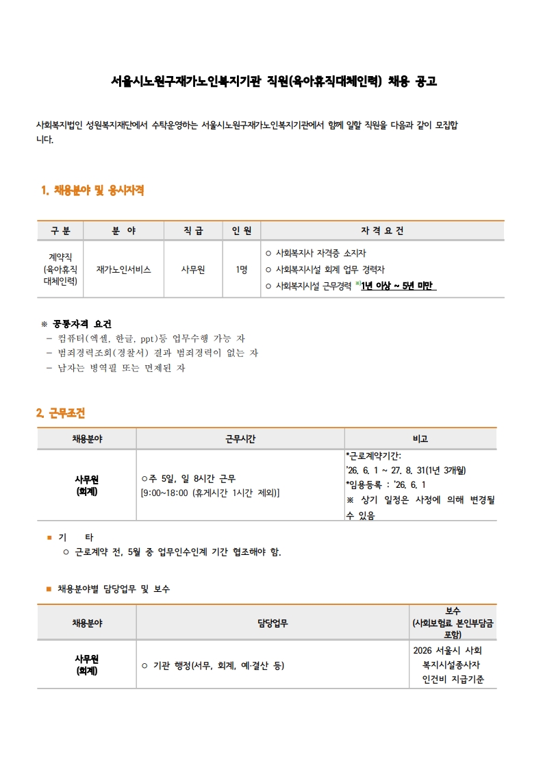 2026년 제1회 서울시노원구재가노인복지기관 채용공고(육아휴직대체인력(사무원))